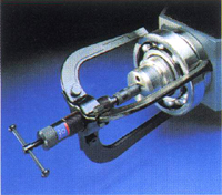 該拉拔器是專為骨架式滾珠軸承而設(shè)計(jì)的拉力均分于拉拔器上,這種工具既可用于軸安裝軸承,又可用于軸殼安裝型軸承根據(jù)滾珠的大小,先用不同的球形端頭,可從上面三種規(guī)格中選擇。  |
